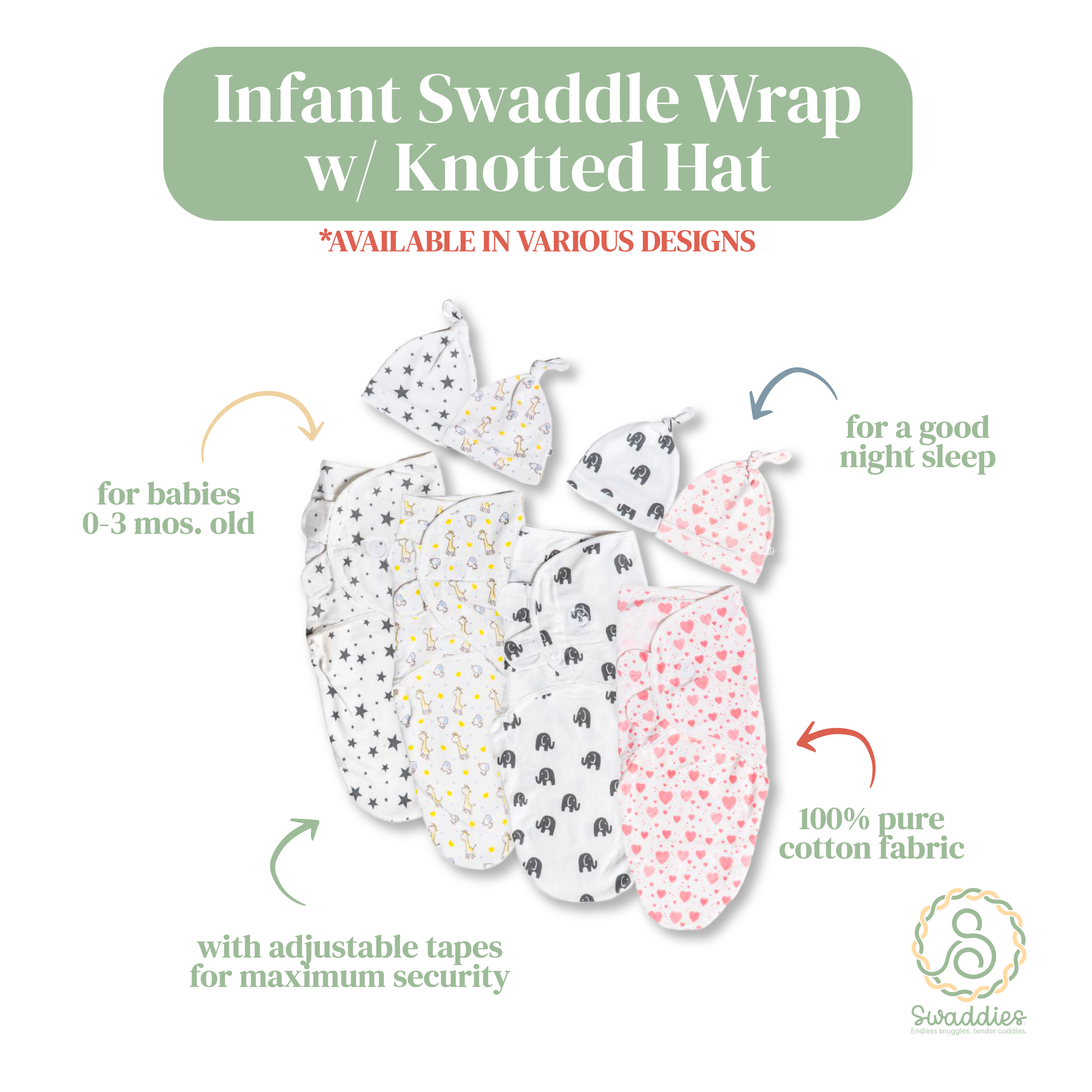 Infant Velcro Swaddle Wrap with Knotted Hat